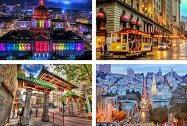 电缆车(CableCar):自19世纪晚期即成为旧金山的交通工具,现在更是成为了山城美景独特一角。乘坐上缆车,你可以穿城而过,深入到很多游客不曾涉足的优雅街道,更全面的记录这个浪漫之城。